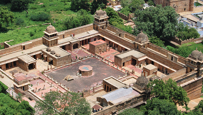 Gwalior Fort (Hindi: ग्वालियर क़िला Gwalior Qila) is associate degree 8th-century hill fort close to Gwalior, Madhya Pradesh, central India. The fort consists of a structure and 2 main palaces, Gujari Mahal and Man Mandir, engineered by Man Singh Tomar. The fort has been controlled by variety of various rulers in its history. The Gujari Mahal palace was engineered for Queen Mrignayani. it's currently associate degree archeologic repository. The oldest record of "zero" within the world was found in an exceedingly little temple, that is found on the thanks to the highest. The inscription is around 1500 years previous.The word Gwalior comes from one in every of the Hindu words for saint, Gwalipa.The fort is constructed on associate degree outcrop of Vindhyan arenaceous rock on a solitary rocky hill known as Gopachal. This feature is long, thin, and steep. The geology of the Gwalior range rock formations is ochre coloured sandstone covered with basalt. There is a horizontal stratum, 342 feet (104 m) at its highest point (length 1.5 miles (2.4 km) and average width 1,000 yards (910 m)). The stratum forms a near-perpendicular precipice.